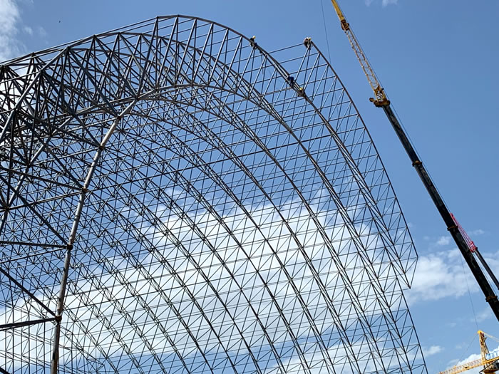 (2)网架加工前应对现场尺寸进行复测,确认无误后方可进行加工、安装;网架制作、运输、安装应遵守《空间网格结构技术规程》JGJ7-2010、《钢网架安达螺栓球节点》JG/T 10-2009、《钢网架安达螺栓球节点用高强度螺栓》 GB/T 16939-2016、《安达钢结构安达工程安达施工规范》 GB50755-2012、《安达钢结构安达工程施工质量验收标准》 GB50205-2020。